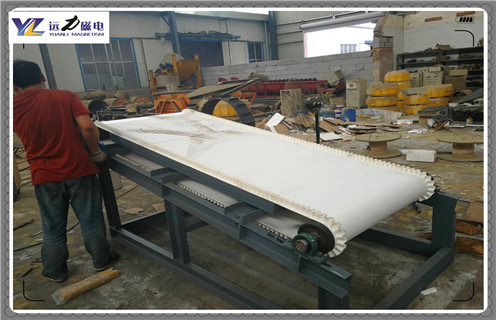 平板磁選機的工作原理,平板磁選機屬于高梯度平板.高場強磁選設備,采用高性能釹鐵硼材料,磁路設計獨特,表面磁場強度能達到18000GS,磁場掃選面積大,除鐵效果好;板面坡度可調,根據(jù)物料狀況調整坡度能夠達到更好好的除鐵效果;皮帶轉速變頻可調,根據(jù)物料狀調整帶速能夠達到更好的除鐵效果;采用耐磨帆布作為輸送帶,大大增加了輸送帶的使用壽命.